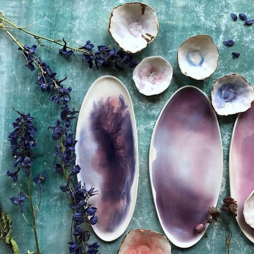 Though visual artist Michelle Blade is known mainly for her paintings, she started creating ceramics in 2014 with the goal to make "unique, utilitarian objects," according to the Good Kind Work site. Every piece Blade creates is slab made and hand-painted, and made individually for each customer (so no two pieces are exactly the same). In her shop, you'll find a mix of plates, serving bowls, cups, and home decor, each featuring nature-inspired colors and playful patterns.