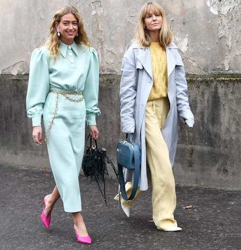 The most obvious among the sartorial refreshers was to ditch the all-black uniform you often find yourself living in by late February and embrace a little color play. Editors and influencers alike dialed up the saturation when getting dressed, opting for monochrome rainbow brights (think head-to-toe hot pink and tangerine suit separates) and pastel palettes that would give any Easter egg a run for its money. Of course, neutrals weren’t entirely absent from the street style scene, but in place of the usual black, navy, and gray, show-goers hit the streets in softer hues, like beige, brown, and taupe.