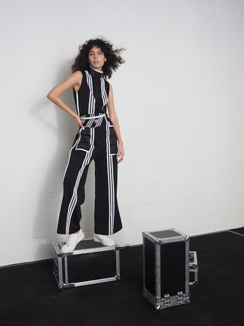 Adidas' iconic three stripes that run down the side of a pair of track pants or slash across a clean white sneaker have become a calling card for the iconic sportswear brand. But part of what cements the longevity of an iconic brand is its ability to innovate, which is exactly what adidas did by collaborating with designer Ji Won Choi. Choi is an emerging NYC-based designer who graduated from Parsons last year, and her thesis collection included a stripe motif throughout, making the collaboration with adidas a natural choice. "I would describe my design aesthetic as bold, energetic, and involves lots of graphic repetition," Choi exclusively tells TZR. The designs she created for the collaboration are a refreshing interpretation of classic sportswear, playful while still holding onto the signature DNA.