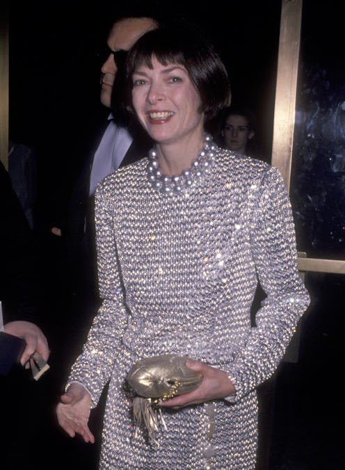 Wintour knows a thing or two about wearing flashy pieces. The EIC arrived at the New York City Ballet Spring Gala in 1990 with a shiny, embellished dress. For her bag, she went with a gold metallic clutch detailed with a fringe accent.