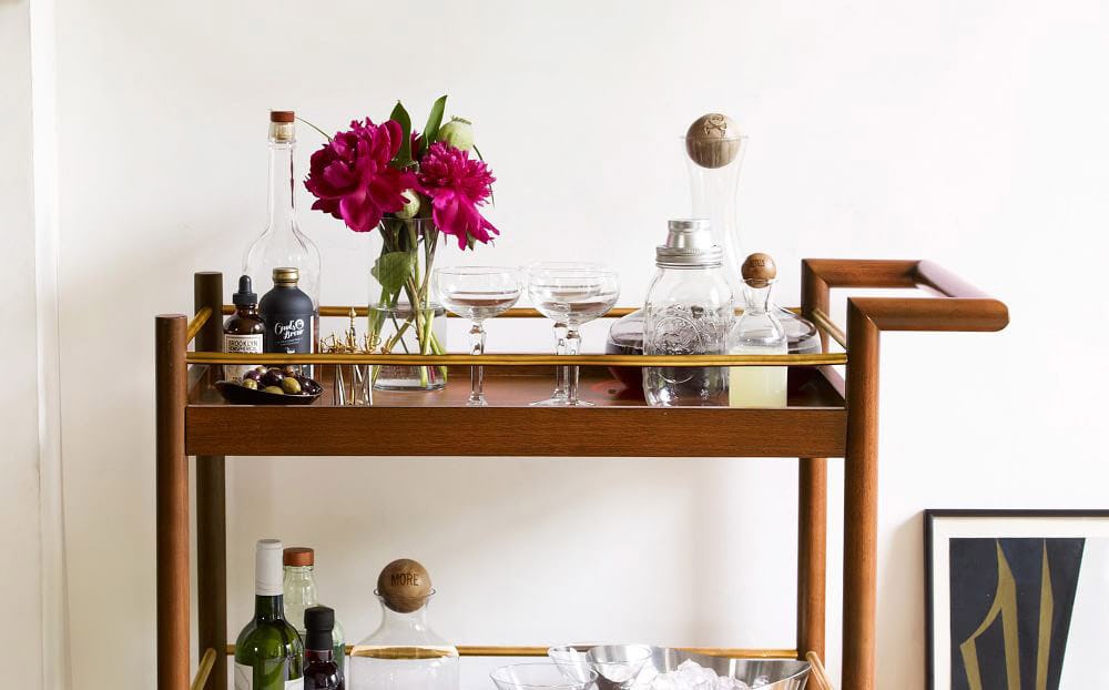 'Tis the season of entertaining. Whether you're a natural born hostess or not, the holidays are a time of year during which your home tends to see a little more action by way of family and friends popping by for gift exchanges, dinners, or even more festive soirées. If you'll be having guests over for any of the aforementioned events — or if you just like to have the makings of a delicious adult beverage at the ready for personal use — one thing to consider in preparation is stocking up on bar cart essentials that will help you whip some mixologist-quality holiday cocktails at a moment's notice.