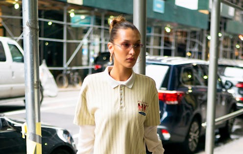 Another day, another stylish Hadid sister ensemble to spotlight. This time around, it's Bella Hadid's pinstriped t-shirt dress you'll want to pay particular attention to. Yep, the sporty staple you thought was strictly reserved for stadiums just proved its street-style staying power — and the youngest Hadid sister has officially found the coolest way to wear it.