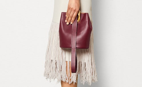 Bottega Veneta’s new Drop bag in Nappa, $1,950, is a bucket bag made with soft, supple lambskin leather. Featuring hardware designed after an oversized gourmette chain link, the brand’s new handbag can be worn as a clutch or carried by the loop strap on your shoulder or wrist. If you’d prefer a bag with a bit more texture, there's also the Drop bag in Hair Calf, which is available for $2,150.