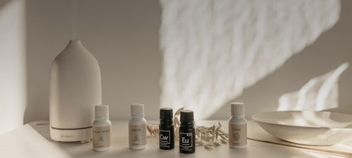 Once you have a few oils in mind, you can start mixing. Yuan says to stick with three to five, and if you have children or pets, make sure to research each oil beforehand to ensure they're safe for your household. Then, in a water vapor diffuser, "You can use 10-15 drops for 30-60 minutes intermittently," she explains, and turn on the diffuser every two hours rather than leaving it on all day.
