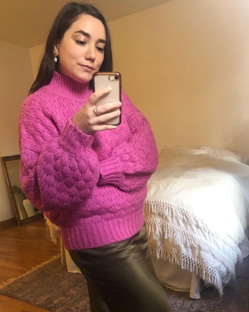 Dr. Kaimal suggested thinking about comfort creativity, “just like we think about comfort food.” When it comes to fashion it made me consider what might be the equivalent in wardrobe form. What was my go-to outfit that I'd feel my best in when I was running around for work all day long, hopping on and off subways, networking over lunch, and catching up with friends over dinner? I landed on some version of a skirt-and-top combination — something with rich texture and a little pop of color. The example seen here I wore to work from my apartment all day and take a Zoom call. I only really went out to treat myself to a cookie at my favorite local coffee shop. Maybe it's a placebo effect, but that was an especially good cookie.