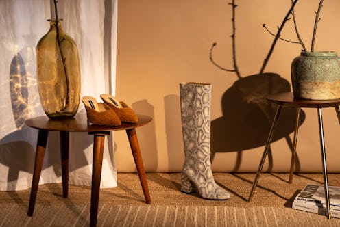 Across the inaugural collection, there's scores of styles to choose from, with ankle booties for those leaning into the change in temperature, open-toed sandals for those wearing from seasonless locations. Ebagua's go-to pair has proven versatility: "My favorite is BO, in the royal python snake print. I really love mixing prints, so when I’m feeling quirky and fun, I pair the BO with a monochrome or grayscale print," she says. "While I’m out running errands, I wear it with jeans and a tucked in, oversized white button down."