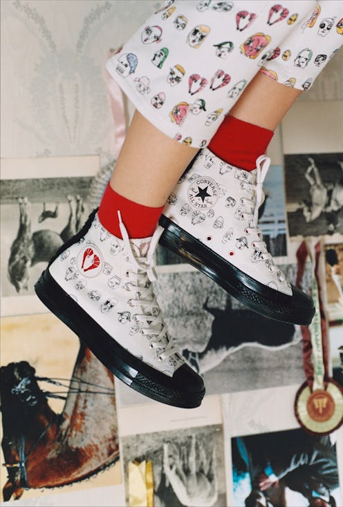 In a season where most people often choose deep jewel tones, dark neutrals, and winter whites, Shrimps’ vibrant and quirky designs stand out. Now, the colorful brand is bringing its aesthetic to your favorite American sneakers. Capturing the essence of young and daring women everywhere, Shrimps has created a women’s footwear and apparel collection with Converse, which gives an update to beloved classics like the One Star and Chuck 70. In this collection, you’ll find Shrimps’ signature graphics and of course, its iconic faux fur.