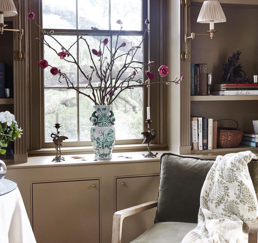 If you're someone who loves to keep florals around the home — or even if you're not — you might want to try adding a dried sprig or clipping (even if it's faux) to a beautiful vase to bring a bit of the outdoor landscape inside. Tiffany Leigh Piotrowski of Tiffany Leigh Design specifically loves the look of cedar or dried magnolia branches.