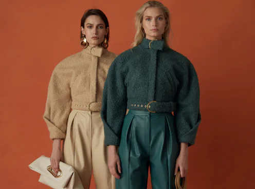 Released on Aug. 14, the robust collection offers something for everyone, whether you favor practical, no-frills jumpsuits or extraverted frocks. There's the ostrich feather-plumed Karis pant, which can be styled with any workwear top, or the brand's matching Simone tank. For something a bit more extravagant, the brand's satin Florence gown taps the asymmetry trend that's essential to wabi-sabi design. Fans of Cult Gaia's Serita dress (including Romee Strijd, Hailey Baldwin, and countless others) will relish the drop's plushy knit styles. Take, for example, the Piper pant set, which offers a leisurely, resort-wear feel that can be worn all fall long.