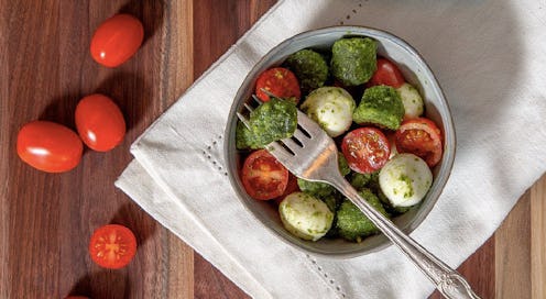 The latest veg-based pasta, Kale Gnocchi can make a colorful addition to your menu with the addition of cherry tomatoes and fresh mozzarella. Bring it all together with Vegan Kale Cashew Basil pesto to add a ton of flavor.