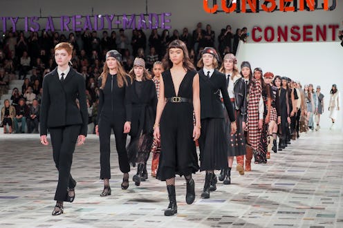 July marks the 4-year anniversary of Chiuri's appointment as Dior's Women's Creative Director. Since then, Chiuri has gained a reputation for collections that not only present beautiful clothes, but come packaged with a larger social message. For Dior's Fall/Winter 2020 collection, models walked a runway lit by signs that read "Consent" and "Patriarchy = Climate Emergency".