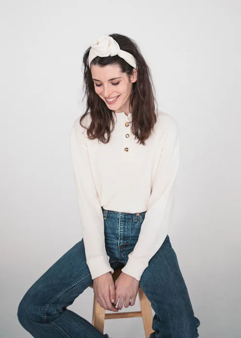 It’s the juxtaposition that Wasko put into these pieces that also make this line stand out from other loungewear collections. While many other lines are created solely for, well, lounging, DONNI’s line is made up of henleys with pearl details, thermal tees with ruffled necklines, and color-blocked shawls — classic cozy items with trendy updates that make each one feel both unique and refined enough to pair with the other thoughtfully chosen items in your closet.