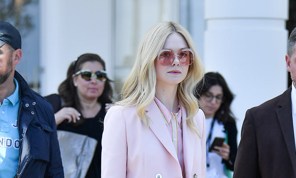 It looks like Elle Fanning is continuing her style marathon after nailing camp at the Met Gala last week, as the 21-year-old actor has already served a slew of sophisticated looks at the Cannes Film Festival. As the youngest member on the jury panel for the 10 day fest, the Super 8 star buttoned up for the job at hand, and Elle Fanning's pink suit proves structured silhouettes aren't slowing down for spring. Fanning hit the ground running as she touched down in Nice in a cream-colored trouser suit on Sun., continuing the menswear-inspired wave in a baby pink suit on Weds.