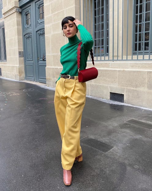 If rules once constituted you give up bright colors once summer came to an end, those expectations aren't so hard and fast anymore. The fashion industry continues to evolve quickly, particularly given social media’s gift of endless (and season-less) style inspiration. Last year, slime green was a color that held its appeal through every single season, but this year there's a new hue on the horizon. Emerald green is fall 2020's must-try color and trendsetters are finding ways to wear it both with neutral staples standard of the season and contrasted with other fun, poppy colors.