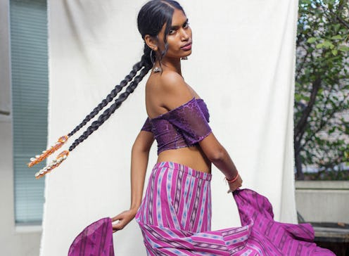 Founder and designer Sheena Sood created Abacaxi (Portuguese for "pineapple") as an homage to her motherland — the flavorful fruits she grew up with served as inspiration to create clothing that's just as rich and exotic. "Pitaya" and "mango"-colored saris punctuate the collection with a clear sense of the brand's heritage, while also striking a chord with the bright color trend that's exploded in recent seasons. There's also a punchy selection of tie-dye wares, which use a traditional technique from Rajasthan, India in which crisp lines of dye are left upon the fabric. Within this variety is the Divya Knit Blouse, which is featured in a distinct plummy color. For those who prefer something a little more on-the-nose, there's also a Nostalgic Fruit Beaded Tee, which feature tamarinds, star fruits, guava, and other exotic botanicals across its chest.