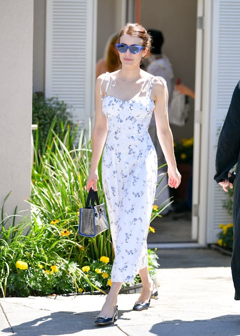 While the world is quickly moving into its sixth month of self-isolation and working from home — adjusting for new (and safer) practices along the way — Emma Roberts is preparing for another new experience: motherhood. The actor confirmed the news on Instagram on Aug. 30. And just as you would expect — considering her penchant for classic, feminine style — Emma Roberts announced her pregnancy wearing one of summer's trendiest looks.