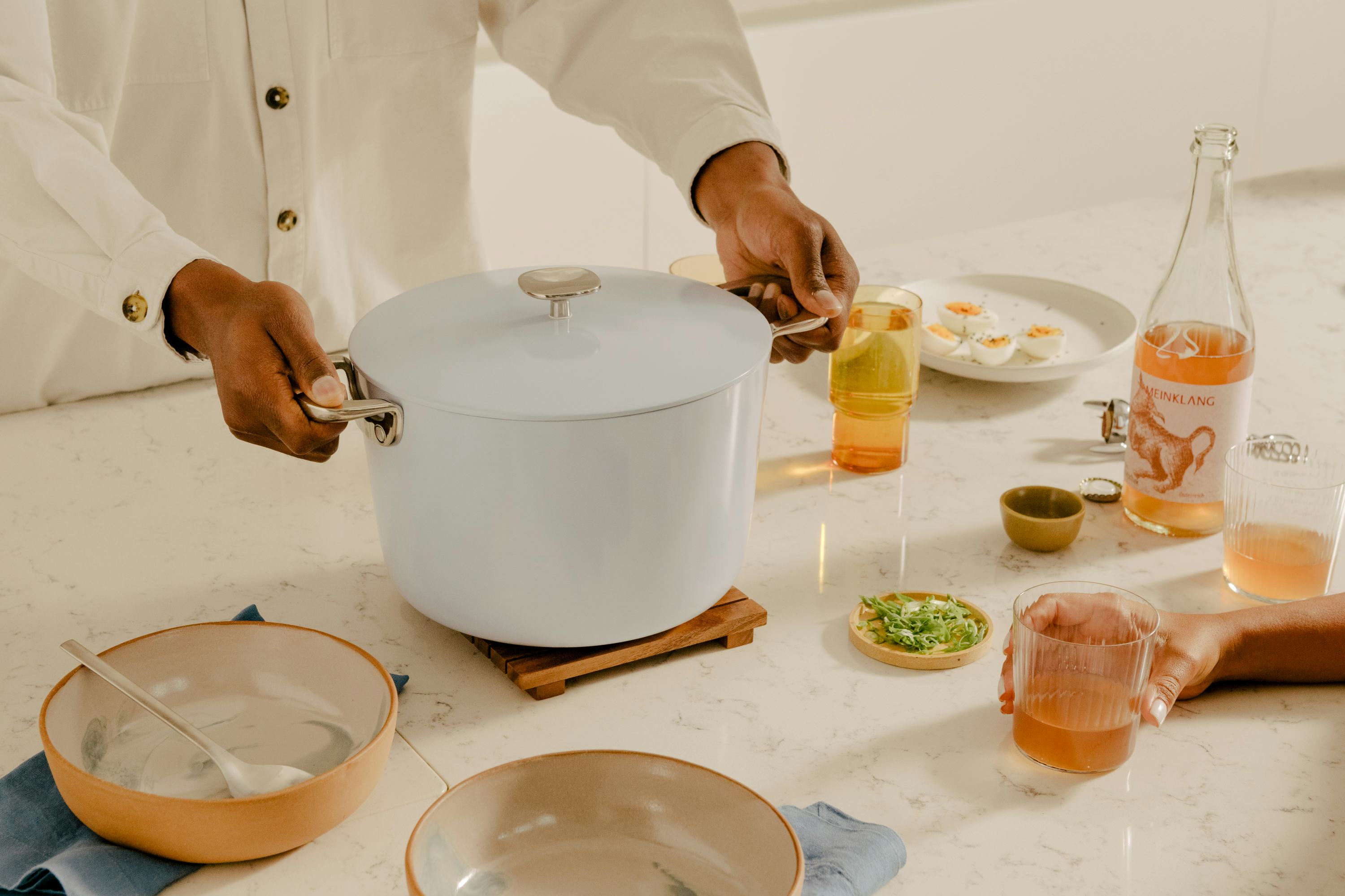 The buzzworthy brand first popped up in the cookware space last year, and after tapping its customers for feedback it launched an upgraded collection at the end of last month with tweaks to make its pots and pans even more valuable tools in your kitchen. Because customers are cooking more and taking more pride in their culinary creations, aesthetics were an important consideration. That said, the update includes four new colors and a slightly sleeker design, so they can go from your stovetop straight to your carefully curated tabletop without skipping a beat.