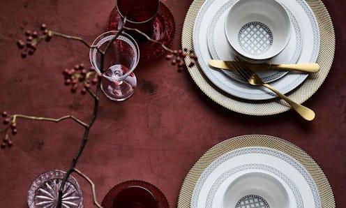 Layer your dinnerware by starting with a $42.50 metallic charger from Pottery Barn followed by this set of celestial inspired dinner plates for $96 to bring the holiday shine and sparkle. If you're seeking a bit more color, opt for the set of AERIN beaded ruby red plates instead. Coming in a set of four for $59.95, these textured plates will add texture and dimension to your table.