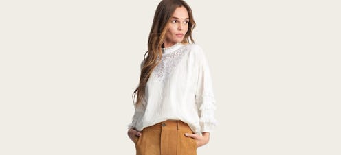 Other westward leaning elements, like denim, suede, and leather (naturally) also feature prominently. The Nadia Wide Leg Suede Pant for $698 offers a fresh take on a culotte silhouette by selecting suede as the fabric, and proves that Frye can design clothing with of-the-moment styles in mind. The style comes in other colors as well (though not in suede), all of which are the perfect, simple addition to any wardrobe.