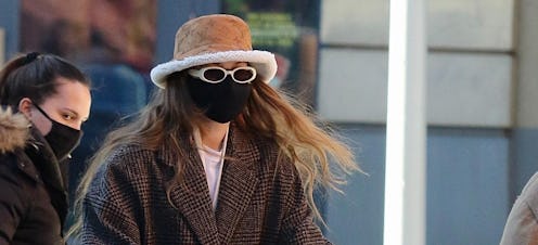Hadid chose to pair the oversize coat with cream-colored tops and bottoms, then completed her daytime look with Dear Frances tan boots. Her footwear choice, which came with a heel, was a tad unexpected given that most people would have defaulted to a flat winter shoe like UGG boots or in the case for those who work from home—a pair of warm, cozy socks. Still, you'll have to give Hadid props for choosing boots that while functional, are definitely dressier than what most may be used to these days.