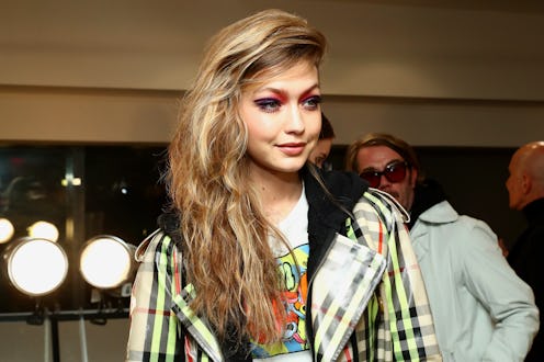 According to Harper's Bazaar, those iconic all-denim outfits Britney Spears and Justin Timberlake wore to the 2001 American Music Awards were Hadid's muse. The birthday girl sported her best Canadian tuxedo, which consisted of a denim jacket over a white crop top, slightly distressed, straight-leg jeans, and her favorite Dr. Martens combat boots — a classic Gigi Hadid look from top to toe.