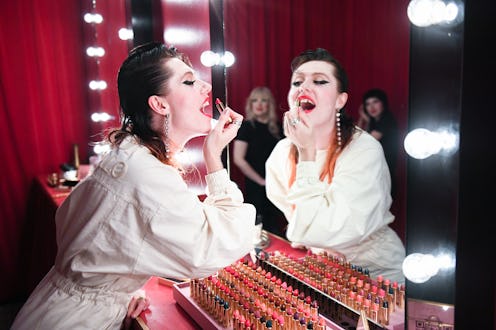 The road less traveled is truly Miller's preference in all things, including beauty — she's just waiting for the rest of the world to catch up. "I want to challenge the people who are doing the big trends like contouring to do it like Nina Hagen style or like Bowie style. That would be sick." As "sick" as that would be, Miller also understands the insecurity of coloring outside the lines, which is why she's so proud of the now-prominent Gucci Beauty banner featuring her signature spaced-out pearly whites. "You don't have to fit into a certain, perfect box, and I think [stepping out of it can be] almost a scary thing to do," she says. "The teeth and lipstick ad is just a flag letting people know, 'OK, you're beautiful how you come. Celebrate your beauty. There's beauty in imperfections or, rather, what haters would consider imperfections.'" Don't you just want to slap some lipstick on your eyelids now?