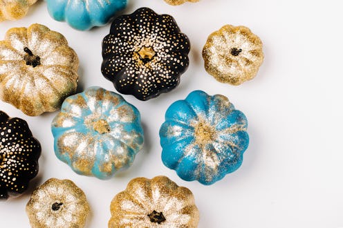 A metallic touch always makes things feel a bit more luxe, so why not apply that to your decor? "For a more modern look, I like the idea of painting pumpkins in shades of gold, silver, and copper accented with black," says Pendergrast. Plus, a can of spray paint will only cost you about $5, which means you'll get a totally rich look for just a few bucks.