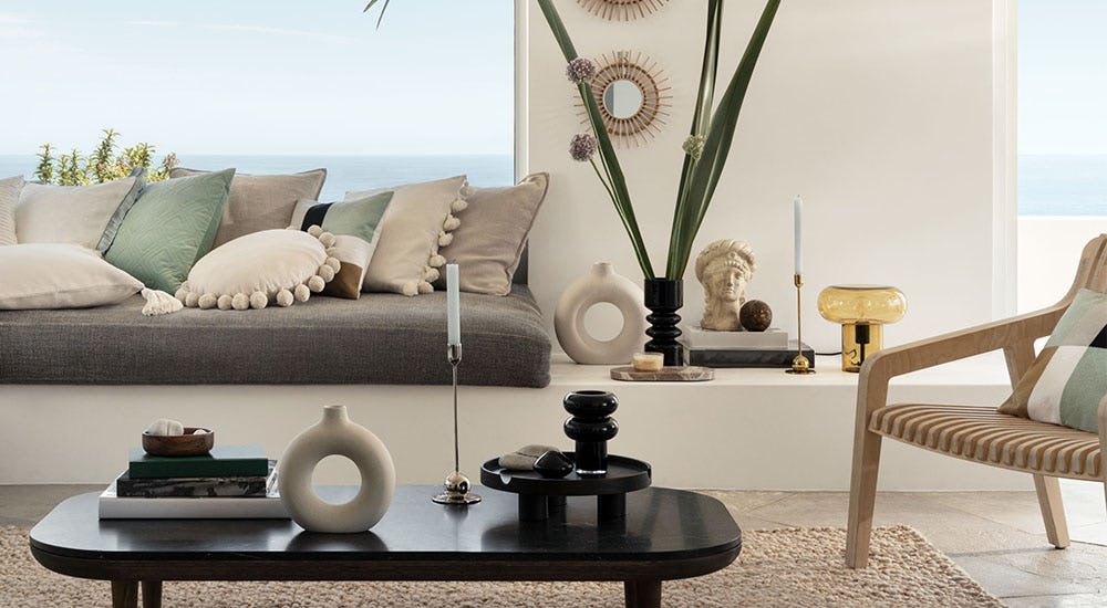 According to infamous groundhog Punxsutawney Phil, spring is arriving sooner rather than later this year, which is good news for many (Warmer weather, a wardrobe update — what's not to like?). So if you use the seasons to inspire tweaks in your home decor, you should probably start shopping now. One great place to start? H&M's spring home line, which is full of coastal colors mixed with neutrals and earthy materials alongside more luxurious ones.