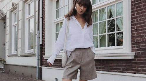 A subset of the larger long-shorts trend, trouser shorts are characterized by a more elegant, refined look, typically featuring tailored elements such as pleats, cuffed hems, and high nipped-in waists. These design details give the styles an elevated, polished feel so you can wear them to the office or for a night out — and still get plenty of casual use out them too. Trouser shorts can be slim-cut and fit narrowly along the thigh (but they shouldn’t be too tight), or voluminous and roomy (though never overly slouchy). And you can opt for a range of fabrics — lightweight linen, classic chino and twill, or fancier textiles like satin, jacquard, or silk. Bottom line: You've got options. Keep reading to find your perfect pair of trouser shorts and see the many ways you can wear them.