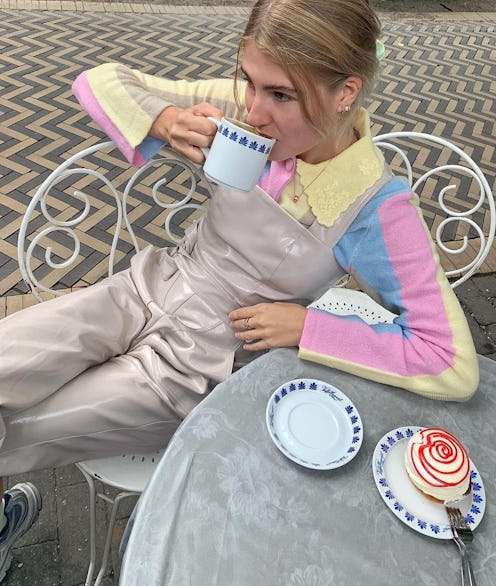 There are a few different jumpsuit iterations I've narrowed down as checking off all of my boxes. While it might not be as comfy as cotton, a cargo style is a bit more elevated and utilitarian. I've spotted a few of my favorite influencers wearing the piece from cool girl label The Frankie Shop, which is now on my holiday wishlist (hint, hint... mom if you're reading this). I'll be taking styling cues from Paris-based street style girl Elie Delphine and tucking the jumpsuit into my knee-high boots. But, for a more cozy option I can wear lounging on the couch watching Succession, I'm dying for one of Ilana Kohn's comfy jumpsuits. To feel put together (even if just my dogs are seeing me), I'll layer on my favorite personalized jewelry from Brinker & Eliza as well as my baby blue Brother's Vellies' Cloud Socks.