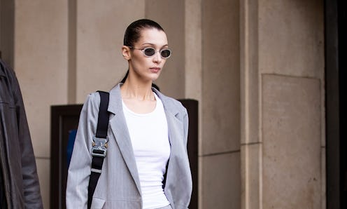 Bella Hadid masterfully styled the classic staple back in March during Paris Fashion Week, opting for an oversized gray suit and chunky white sneakers alongside the basic tank. With her signature slicked low bun and small sunglasses, the 22-year-old offset the professional set with street-savvy staples that gave it a notably undone feel. Channel the supermodel's laid-back aesthetic with similar options, below.
