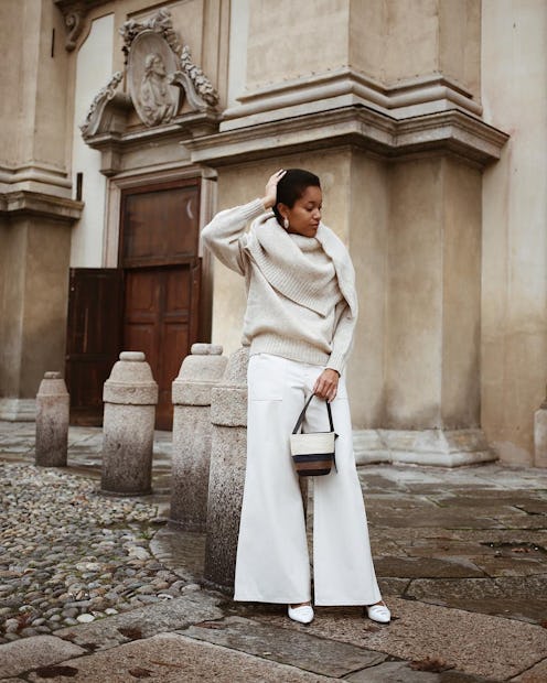 When it’s snowy and below 32 degrees, putting together a fashion-forward outfit is the last thing on your mind. Sweats (or anything comfortable) are the default, because face it, the only way you're getting out of bed is in an outfit that basically feels like you never left. But, this season, there's a trend that's poised to make getting ready in winter all the easier, and the good news is it's not only easy — it's stylish. Embracing the season's monochromatic trend and nailing how to wear neutrals in a fashion-forward way is the key. Not only does it take next to no effort to throw together shades of cream, ivory, and beige, there's something inherently luxe about these wintery hues.