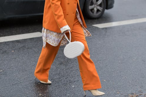 Why stop at one orange piece? Throw two into the mix, as demonstrated by fashion editor Michelle Li. To complete the look, add a trench coat and you're ready to conquer spring.