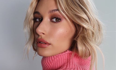 Hailey Baldwin told Elle she prefers when she's "natural and not wearing a lot of makeup," but the model is willing make an exception for pink shadow. And rightfully so — her smoky wash of deep pink is perfection with a subtle lip, tousled waves, and matching knitwear.