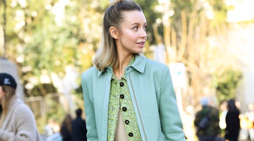 According to Pantone, “Living Coral” is the color of 2019, but you wouldn’t know it to look at what women have actually been wearing this year. From the Fashion Week streets to Instagram feeds, everything is green, green, green. And it doesn’t seem like this verdant obsession will be easing up anytime soon. While spring and summer were dominated by slime green, Fall 2019 is poised to be all about the pistachio color trend and how to wear it. Not as bright as lime, nor as drab as olive, or blue as sea foam; pistachio is a soft, muted shade of green in the realm of sage, honeydew, warm mint, and light moss. It’s a sophisticated and modern alternative to its electric predecessors — a color that goes well with more than you’d expect, and feels of-the-moment and timeless all at once.