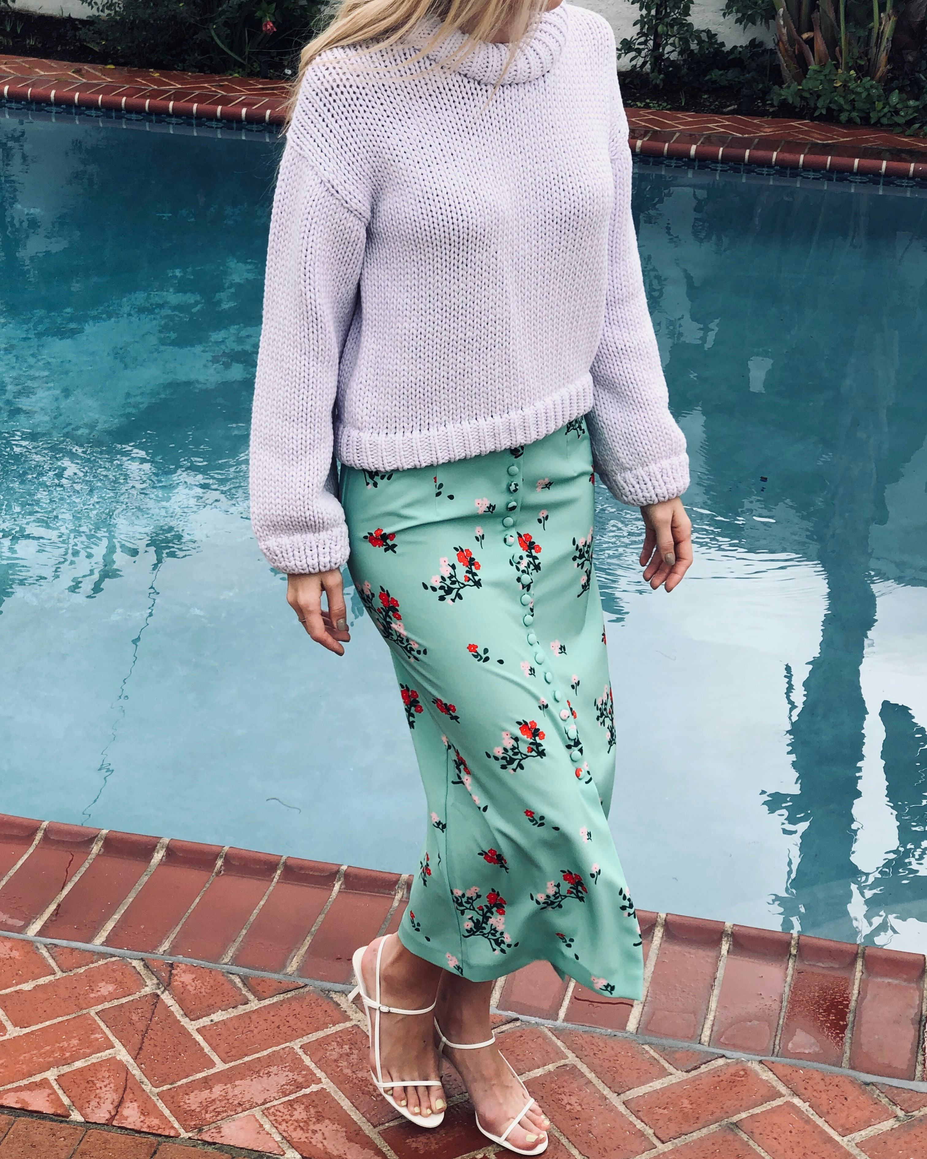 Finally — now stay with me here because it's about to get crazy — I paired mint and lilac together. Why not go whole hog in a desperate attempt to pretend spring has already sprung? I kept the pieces simple, a cropped sweater and pencil skirt, and paired them with barely-there sandals. The final product was work-appropriate and surprisingly not too sugary.