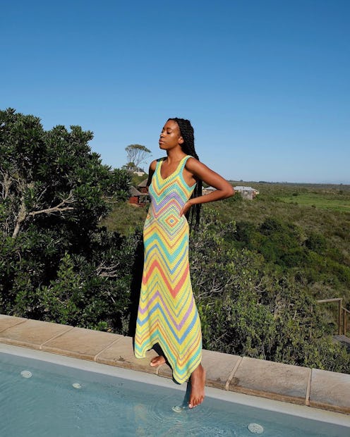 For a quintessential summer look that gives off "on holiday" vibes, a colorful crochet dress is ideal. Keep the rest of your look simple by finishing with minimal sandals, a mini bag, and delicate jewelry.