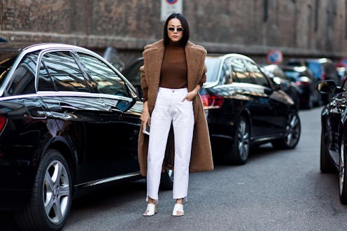 It may strike you as odd that at a time of year when the scenery tends to be more covered in white than ever, wearing white is somehow taboo. Why is there this unspoken rule that even though Mother Nature is doing it, everyone else shouldn't? Fortunately, most women have begun to abandon the archaic notion that you shouldn’t wear white after Labor Day, and instead embrace the chic potential of wearing white all winter long. For some articles of clothing it’s obvious: White sweaters, white coats, white boots — they all feel inherent and exclusive to a cold-weather wardrobe. But how to wear white jeans during the winter? Since light denim has its roots in your summer closet, it's a more challenging item to reconsider for winter wear.