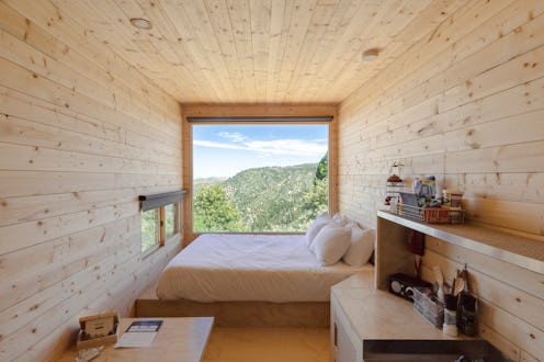 Getaway, which offers a few collections of these nature pods (bookable for a two-night minimum, starting around $99 per night) in cities including Los Angeles, Austin, Portland, and New York among others, had a location about an hour and a half away in the San Bernardino mountains. Though just a short drive from LA, the landscape couldn't be more different. And besides that, it had just received a fresh dusting of snow. I'd seen from the photos that the tiny cabins here featured a large glass window — perfect for stargazing and sunset-watching from the queen-sized bed, where I imagined I'd spend the two full days catching up on books and finishing up an essay I'd been completely procrastinating on.