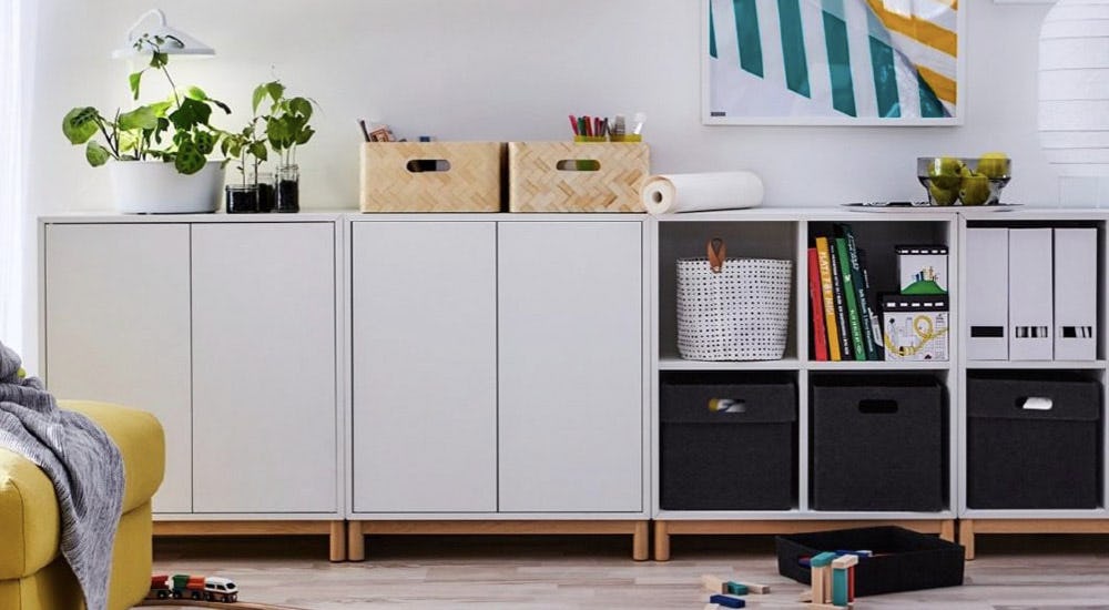 It is possible to have your home be clutter-free without having to embark on a massive purge (although, that can also be totally gratifying) — you just need the right tools. And when it comes to organization, it's tough to beat the affordable, chic, and minimalist IKEA storage pieces that might just be the saving grace for having a pad that's just as functional as it is stylish.