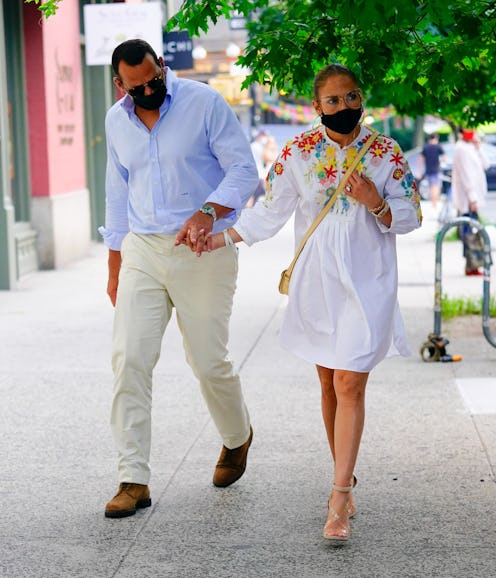 When it comes to celebrity style files, J.Lo's is as robust (and as varied) as they come. Be it her many Superbowl outfits or her internet-breaking, Y2K-era Versace dress for the Oscars, the Bronx-born singer is best known for her glamorous, on-duty looks. So, it may come as a surprise that Lopez's personal style is filled with versatile pieces — from athleisure to romantic — that are so easy to pull off. J.Lo's lace Tory Burch dress is currently on sale, but it's an ideal piece to help transition Summer's cottagecore look into the new season.
