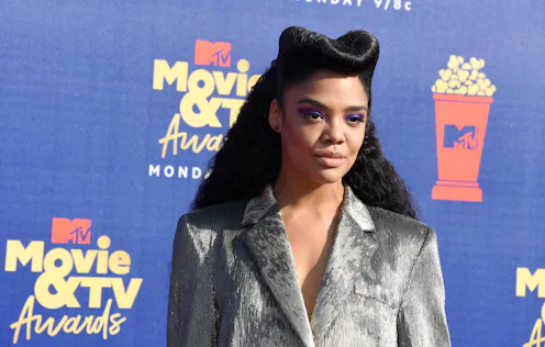 The jaw-dropping red-carpet style and beauty inspiration just keeps streaming in. The latest can't-miss event to serve up majorly memorable fashion and makeup moments? The MTV Movie & TV Awards, which took place Sat. evening at the historic Barker Hangar airport in Santa Monica, California. Everyone from Jada Pinkett Smith to Aubrey Plaza turned up in getups that's shined and sparkled from every angle, but there were two attendees, in particular, that really stood out — and not because of their sequin-embellished frocks. That's right, Elisabeth Moss and Tessa Thompson's 2019 MTV Movie & TV Awards beauty looks, which were all about glowing skin, stole the show at the June 15 gathering.