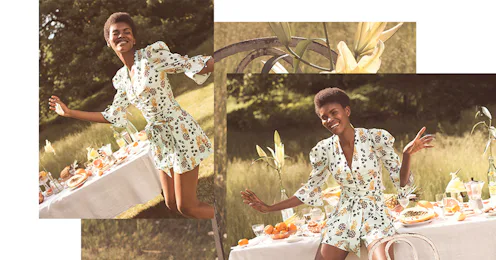 "When you're on vacation you want to feel free and have fun, you're not worried about being all business, which is the perfect opportunity for more effortless pieces," says Simkhai. While his main collection embraces rich hues, the bursts of color and fruit print in this collection are a departure from his norm. I asked him if living in LA, undoubtedly more color-centric than his previous home of NY, influenced the palette. He glanced jokingly at his royal blue trousers and conceded that yes, color has certainly seeped into his world since moving to California. But what about the on-trend print choice? "Fruit prints are so joyful and vibrant, so it was great to play with them in this capsule because we haven't before," he explains. "Overall I wanted to create pieces that encapsulate the feeling of vacation, are casual and can be worn everywhere," says Simkhai. He succeeded.