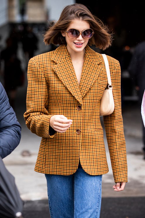 Gerber is a chameleon when it comes to seamlessly changing with the seasons. So, when it comes time to layer up comfortably for spring, she may as well teach the master class. On Wednesday evening, the 18-year-old supermodel stepped out of Valentino's Couture Spring 2020 show in Paris in a cool look that epitomizes paternal style. Past her slicked-back bob, Gerber sported a classic gray hoodie with a wide-lapel blazer in a subtle gray-green hue (which, although deemed the world's ugliest color, she styled to perfection). A blazer is the ideal springtime staple; it's more lightweight than a peacoat, therefore mixing perfectly with a slouchy sweatshirt for a warm, yet breathable look. Kaia opted for a jacket in an oversized fit that's both cozy and chic.