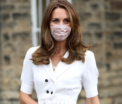 The Duchess of Cambridge has long been an advocate for causes focusing on parents and children in need. On Aug. 4, she spent the day with Baby Basics Sheffield, a charity that provides families with essential goods like food and baby supplies. For a hands-on day of sorting donations, she went with a midi dress and heel combo that's so good it's actually been repeated. But even an avid follower of Royal fashion may not have noticed since Kate Middleton's floral face mask single-handedly revamped the whole look.