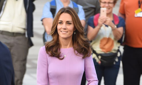 The Duchess of Cambridge dusted off an old favorite for the summit on Tue., which she attended alongside husband Prince William. The dress is an Emilia Wickstead A-line wool-crepe dress aptly named Kate. The elegant piece features a boat neck, long sleeves, a detachable belt at the waist, and a fit-and-flare skirt. The Kate dress comes in baby pink, navy, and scarlet red, but Middleton's is a soft, pastel-lilac hue.
