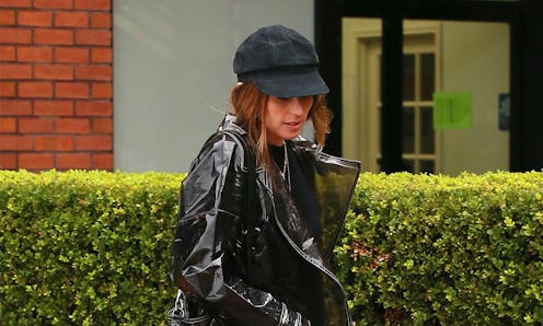 Schwarzenegger, who recently announced her engagement to Chris Pratt, was photographed braving an unusually rainy Los Angeles day on Jan. 17 wearing a black PVC raincoat. The unique piece featured a belted waist, structured collar, and a mid-length hem. Schwarzenegger kept it cohesive in an all-black outfit, opting for a cozy sweater, ankle boots, and a slouchy beanie.