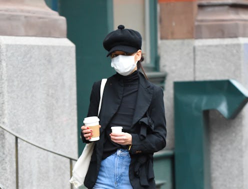 On Jan. 7, Holmes stepped out in a quintessential errand look, which reassigned her airy co-ord for colder months. All it took was a key outerwear piece that's primed for keeping warm in. Past her signature messy bun and CDC-recommended face mask, Holmes went with an eggshell-colored "shacket" (shirt-jacket) and a pair of pants to match. Underneath, she layered an icy white button-down and on top, a slick leather trench coat. Her favorite Common Projects sneakers also made an appearance.