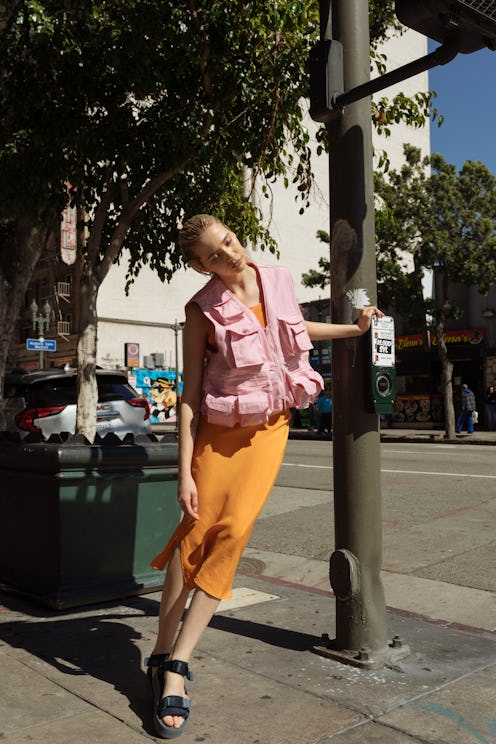 Developed and produced in Los Angeles, the first collection from Jubin was inspired by the outdoors and camping, and that can be seen most vividly in the use of details like paracord drawstrings on the various shorts styles and carabiner closures on tops and dresses. Additionally, the collection features a number of utilitarian silhouettes ranging from shorts and pants to a standout bubblegum pink fisherman vest.