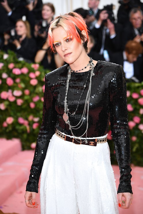 Kristen Stewart isn't typically one to play it safe — especially in the beauty department. She's rocked just about every hairdo in the books, from a classic pixie to a bold, platinum blond buzz cut, and she's constantly experimenting with out-of-the-box makeup looks, too. The actor made instant headlines when she debuted yellow brows at the 2019 Met Gala, and though that beauty moment seemed hard to beat, Kristen Stewart's makeup at Chanel's Metiers d'Art show officially takes the cake as her boldest (and best) of 2019.